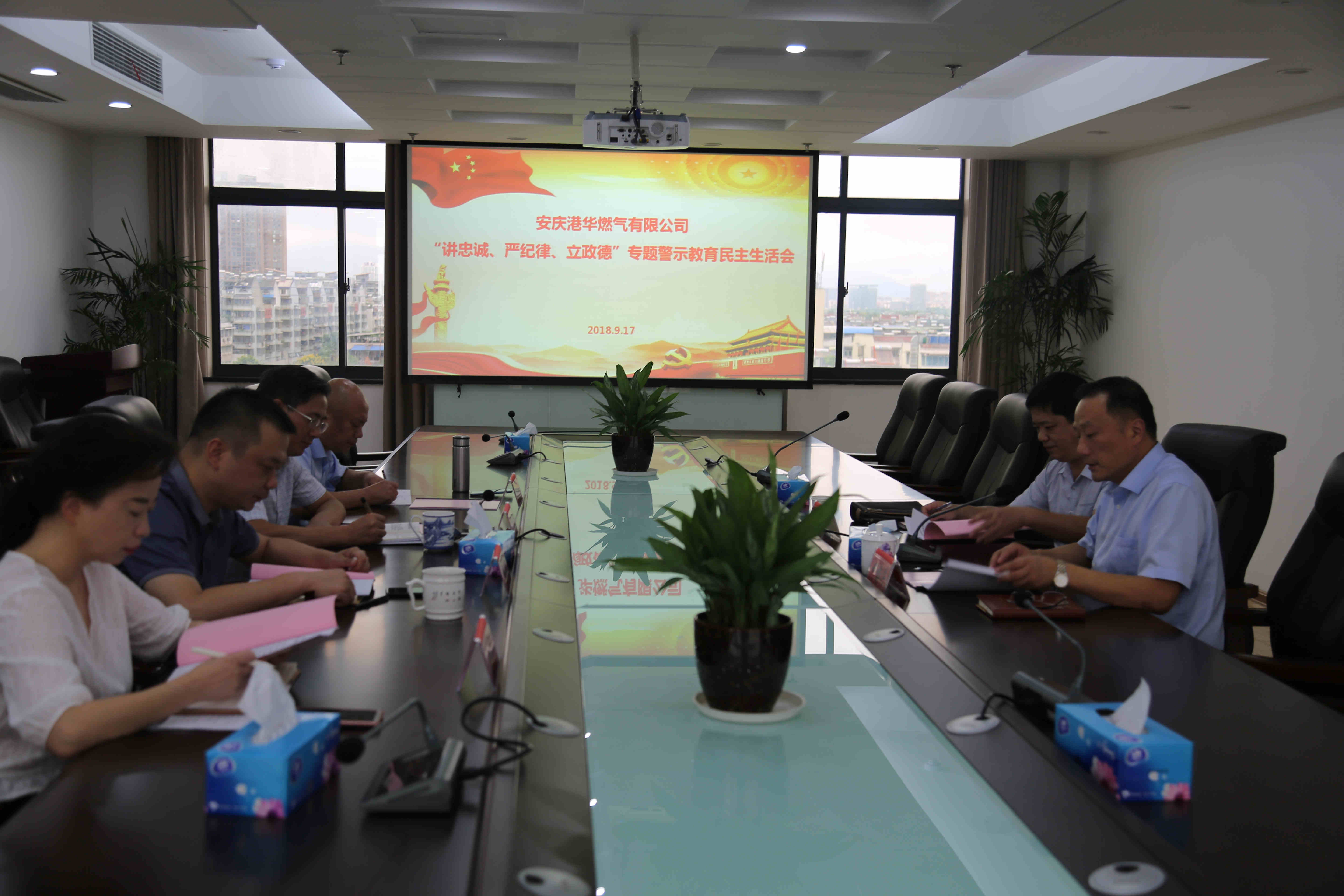 9月17日,安慶港華燃?xì)庥邢薰军h委召開“講忠誠(chéng)、嚴(yán)紀(jì)律、立政德”專題警示教育民主生活會(huì)。市城管局黨委委員、副局長(zhǎng)姚志蒞會(huì)指導(dǎo),公司黨委書記、董事長(zhǎng)何族興主持會(huì)議。