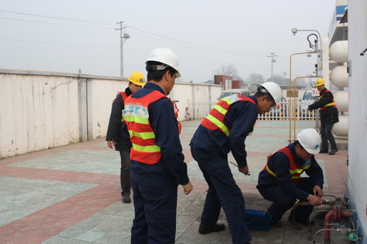12月6日下午15時50分,安慶港華燃氣集賢關CNG加氣站內響起急促燃氣報警器聲。緊接著,加氣工迅速關閉加氣機應急球閥停止加氣,禁止車輛移動,并大聲呼喊:“漏氣了,大家快撤到站外安全地帶?!?/span>15:52分,站內司乘人員在加氣工的指導下,全部撤到站外,并在站外拉起警戒線。16:00,站內搶修人員通過對泄漏現(xiàn)場的初步判斷泄漏來自2#壓縮機處,立即停止壓縮機工作。如此同時,當班班長立即把現(xiàn)場情況向站長報告。16:10分,接到指令的站、部門負責人帶領部門應急行動小組趕到現(xiàn)場。經(jīng)過各行動小組緊張、有序的處置,僅用20分鐘的時間就成功檢查并消除了泄漏——2#壓縮機法蘭處。16:32,現(xiàn)場指揮發(fā)出:“解除警戒,演練結束”指令。