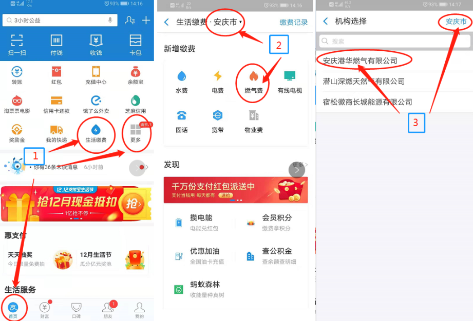 支付寶:打開支付寶,“首頁”-“生活繳費(fèi)”(或者在“首頁”-“更多”中選擇“生活繳費(fèi)”),繳納燃?xì)赓M(fèi)或者預(yù)存氣費(fèi)。