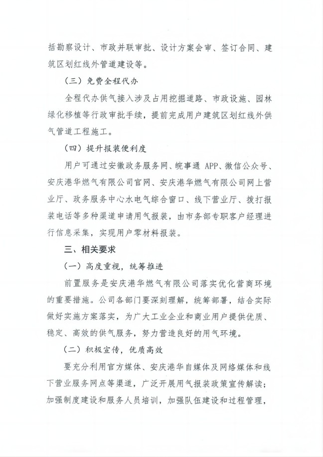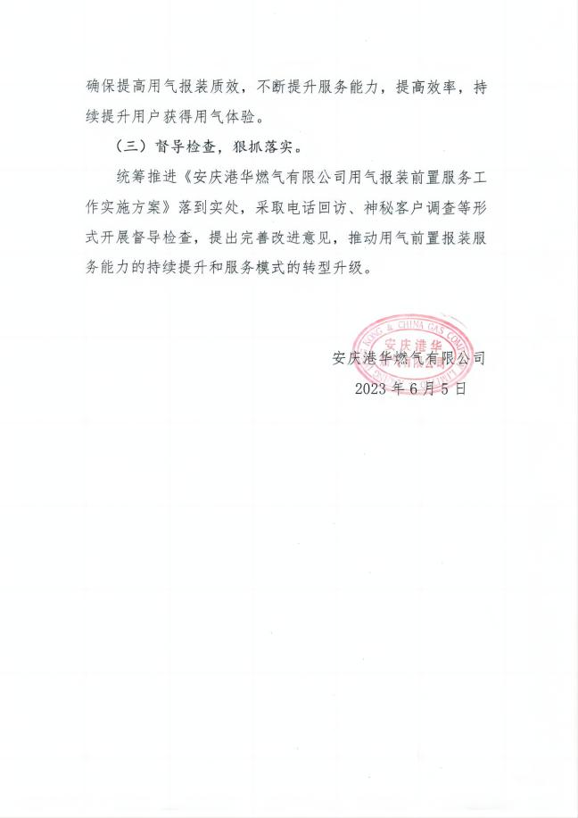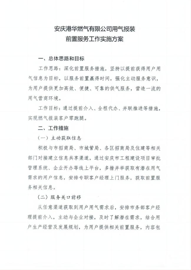 安慶港華燃氣有限公司用氣報裝 前置服務工作實施方案