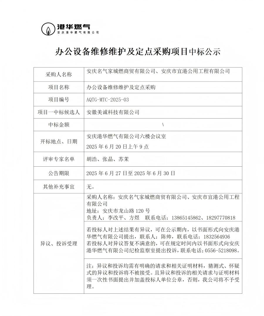 辦公設備維修維護及定點采購項目中標公示
