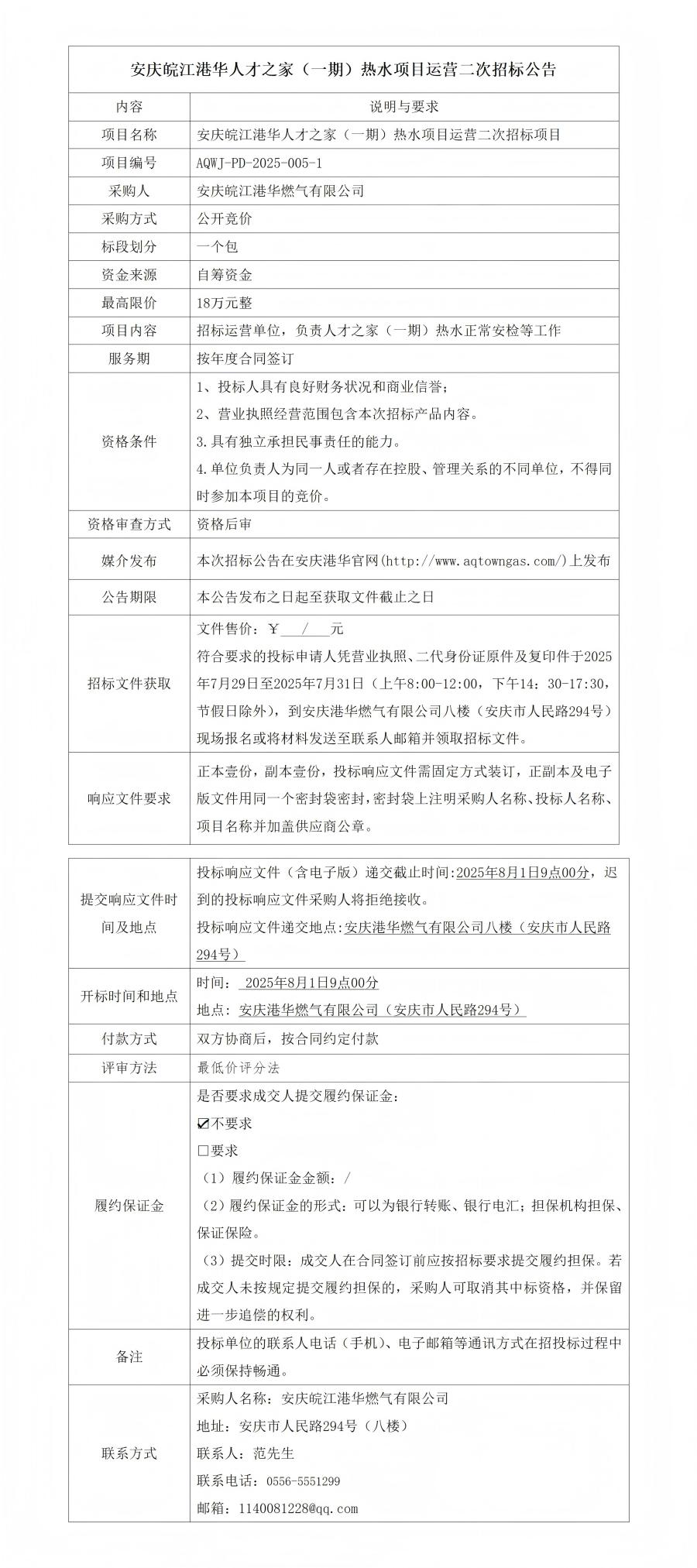 安慶皖江港華人才之家(一期)熱水項(xiàng)目運(yùn)營(yíng)二次招標(biāo)公告