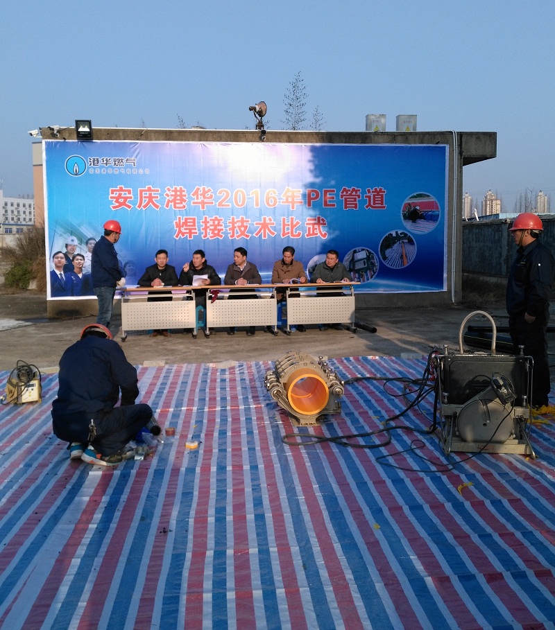 培訓(xùn)通過案例分析等方式詳細(xì)講解了焊接法律法規(guī)、PE管生產(chǎn)工藝、焊接技術(shù)及注意事項(xiàng),并就焊接關(guān)鍵點(diǎn)進(jìn)行了集體探討。為保證比武活動(dòng)順利有序開展,現(xiàn)場(chǎng)還成立了由公司總經(jīng)理王政文、運(yùn)行副總楊善俊、工程副總裴曉斌及相關(guān)專家組成的評(píng)委組。評(píng)委組通過抽簽的方式隨機(jī)確定各參賽人員的具體參賽項(xiàng)目(熱熔和電熔兩種焊接方式),并從焊接質(zhì)量、作業(yè)時(shí)間等多個(gè)方面對(duì)所有選手進(jìn)行綜合評(píng)判、打分與裁定。