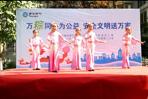 當(dāng)日,安慶港華的義工隊(duì)員和“藍(lán)焰”黨員義工們?cè)缭鐏?lái)到炮營(yíng)山社居委轄區(qū)的諧水灣小區(qū),撐帳篷,搭展臺(tái),搬物料,一場(chǎng)以“包粽子、看演出、講安全、傳文明”為主題的文化大餐陸續(xù)上演?;顒?dòng)現(xiàn)場(chǎng)熱鬧非凡,不少用戶正在港華燃?xì)獾摹傲鲃?dòng)服務(wù)車(chē)”前排隊(duì)進(jìn)行燃?xì)鈭?bào)裝和繳費(fèi),服務(wù)臺(tái)的工作人員一邊發(fā)放著燃?xì)獍踩麄魇謨?cè),一邊針對(duì)居民的用氣問(wèn)題耐心作答。而廣場(chǎng)正中央搭建的演出舞臺(tái)更是吸引不少居民駐足圍觀,安慶港華燃?xì)夂蜕鐓^(qū)居民聯(lián)合打造的精彩紛呈的文藝表演正在進(jìn)行。既有優(yōu)揚(yáng)的港華企業(yè)歌曲,又有優(yōu)雅的服務(wù)禮儀表演;社區(qū)阿姨們的廣場(chǎng)舞,舞出了歡樂(lè),舞出了自信,來(lái)自轄區(qū)學(xué)校孩子們有模有樣的黃梅戲表演,讓我們看到了傳統(tǒng)戲曲文化的美好傳承;穿插其間的燃?xì)獍踩R(shí)有獎(jiǎng)問(wèn)答更是引得眾人踴躍參與,掌聲、歡呼聲此起彼伏。而臺(tái)下社區(qū)阿姨和港華義工在欣賞精彩文藝演出的同時(shí),還不忘巧手裹粽,不多會(huì),桌上就擺滿了幾百只飄著粽葉香的愛(ài)心粽,既弘揚(yáng)了傳統(tǒng)文化,又增進(jìn)了企業(yè)和居民之間的感情,現(xiàn)場(chǎng)呈現(xiàn)出一片文明和諧,奮進(jìn)向上的氛圍。