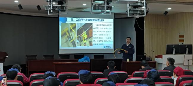 為進(jìn)一步加強(qiáng)工商用戶安全用氣意識(shí),提升突發(fā)事故的應(yīng)急處置能力,有效預(yù)防和遏制燃?xì)獍踩鹿实陌l(fā)生。3月27日下午,應(yīng)安慶師范大學(xué)基建與后勤管理處邀請(qǐng),公司燃?xì)獍踩嘤?xùn)講師來(lái)到安慶師范大學(xué)龍山校區(qū)開(kāi)展燃?xì)獍踩嘤?xùn)。校內(nèi)工商燃?xì)庥脩?、學(xué)校后勤處管理人員約50人參加培訓(xùn)。
